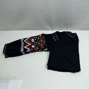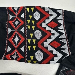 Sold as is‼️This stunning dress by Free the Roses showcases a black base adorned with intricate red embellishments, perfect for casual or resort wear. The A-line silhouette offers a flattering fit, while the long sleeves and crew neck add a touch of elegance. The dress is beautifully embellished, making it a standout piece for any occasion.