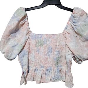 Free the Roses By Free People Crop Top Size Large Side Zipper Ruched Tie Dye