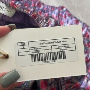 Free the Roses Floral Smocked Reffle Velvet Party Bodycon Festive Mini NEW Dress