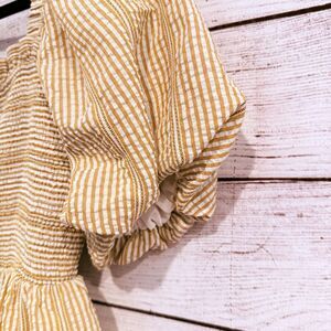 Free the Roses Maxi Dress Yellow Striped Ruffle Tiered Puff Sleeve Size Small