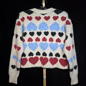 This Heart Cardigan will keep you warm and cozy in style! Its luxurious and soft fabric long sleeves and classic V neckline garnished by ribbed cuffs and neckline and button closures make this sweater a comfortable timeless look for any season.
