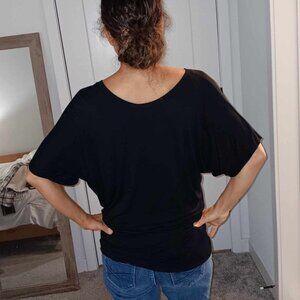 Soft and comfortable. Size small but somewhat oversized, stretchy material.
