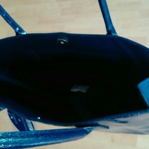 Nice n roomy NWT navy blue tote. Patent faux alligator skin on the front and handles. Zipped pocket inside. Snap closure. First purchase of $15 or more gets it! π