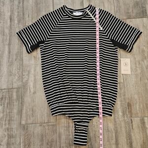 Free x Rein Bodysuit Women Size S Moto Zip Short Sleeve Crew Neck Equestrian NEW
