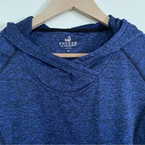 EUC Stay comfortable and stylish with this Free Country blue and black space-dye pullover hoodie. Slightly fitted cut, thumb holes, and kangaroo pocket.
