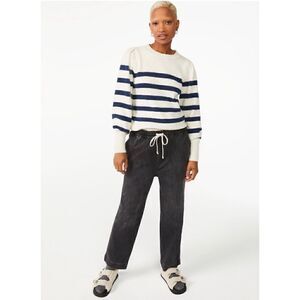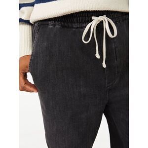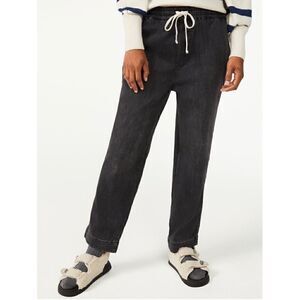 Free Assembly Women’s Washed Black Denim Joggers Elastic Waistsband Pants New