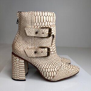 FreeBird Boot Women 9 Joey Snake Print Leather Strap Zip Up Rodeo Party Core Ex