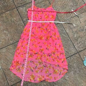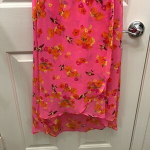 Free Bird Medium Pink Scoop Neck Spaghetti Straps Hi Lo Hem Birds Flowers Dress