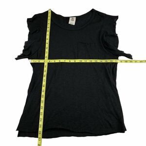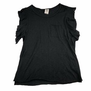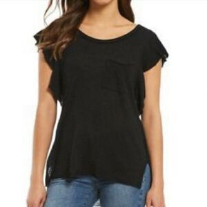 We The Free People Black Ruffle Flutter sleeve Pocket Tee. This tee adds a perfect twist to a basic tee & the ruffle sleeves give it the perfect something extra! Super flattering & lightweight.