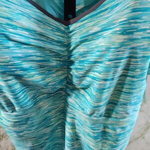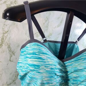 New with tags!! Size 2X. 23 inches pit to pit, 29.5 inches long. Adjustable straps, shelf bra with molded cups, cinch bottom sides/tie.