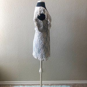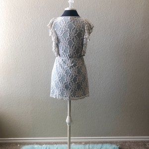 A lovely, casual wear bluish gray dress, featuring a delicate lace design. Perfect to wear for semi-formal occasions!