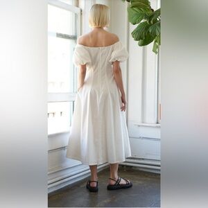 FreeMarket PROTECTING MY PEACE WOVEN MIDI DRESS Elegant Off-Shoulder White Dress
