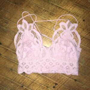 Free People Adela longline, Pink, lace lined, strappy, sexy, bralette. V-neck. No underwire. In good, used condition. From a pet and smoke free house. Happy to bundle!