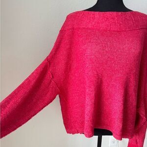 Free People Alana Sweater Off-Shoulder Knit Pullover Red Size M Oversized