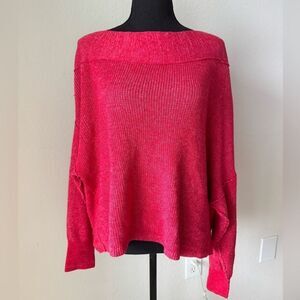 Free People Alana Sweater Off-Shoulder Knit Pullover Red Size M Oversized