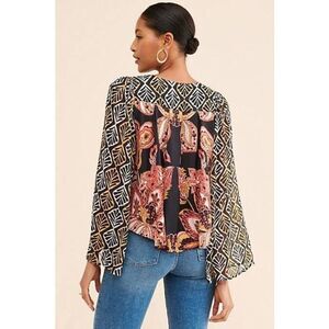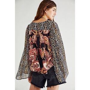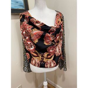 Perfectly printed in a drapey, long sleeve silhouette, this essential top features a defined cowl neckline and contrast sleeve detailing for added dimension.