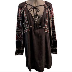 Free People All My Life Embroidered Smocked Dress Size XS Women's