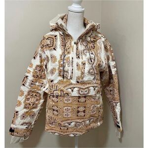 So sporty and perfect for hitting the slopes, this functional pullover is featured in an anorak-style and fully waterproof seam-sealed design with an adjustable brimmed hood, fleece-lined handwarmer pockets, convenient lift pass pocket and interior ticket ring, as well as underarm vents, a microfleece chin guard, and side entry zips for an easy on and off.