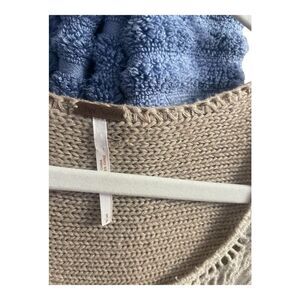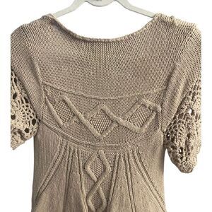 Free People Tan Lace Short Sleeve Sweater Blouse Top. Size Small. Measures 16” P2P and is 25” long from shoulder to hem. Sweater is in excellent preowned condition with minimal wear. No stains or visible flaws.