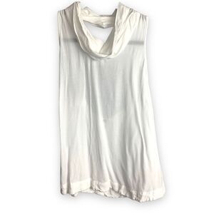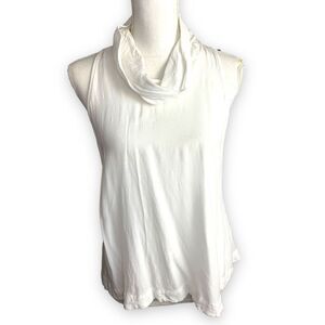 Gauzy white Sleeveless, backless, funnel/mock/cowl neck top