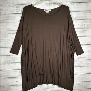 Free People Beach Tunic Brown Boho Lagenlook Knit Oversized High Side Slits XS