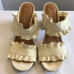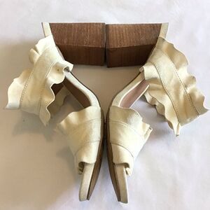 Free People Beige Rosie Mule Heel Slip On Ruffle Block Heel Sandal Size 40