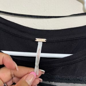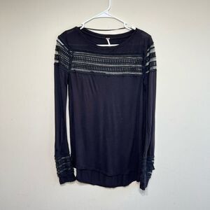 Free People Black Long Sleeve Mesh Roxie Tee Small