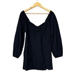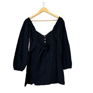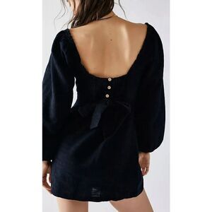 Features: Sweetheart neckline, balloon sleeves, textured woven fabrication, floral knot detail at bust, back tie feature