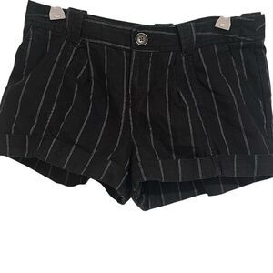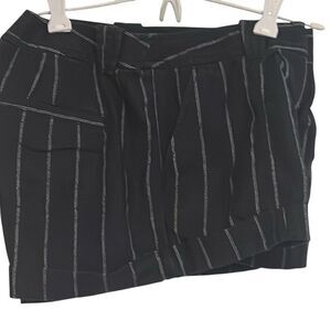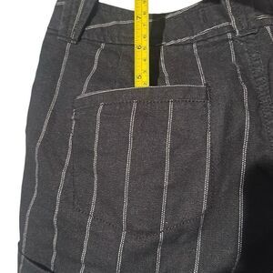Free People Black White Pinstripes Linen Pleated Cuffed Shorts Ladies Size 2