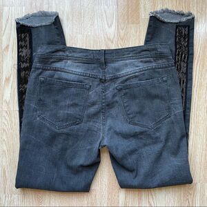 Free People Black/Gray Distressed Black Beaded Ankle Jeans