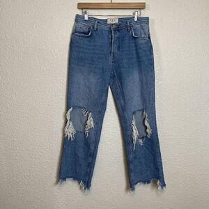 Free People Blue Distressed Denim Maggie Mid-Rise Straight-Leg Jeans Women's Size 27