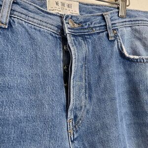 Free People Blue Distressed Denim Maggie Mid-Rise Straight-Leg Jeans Size 27
