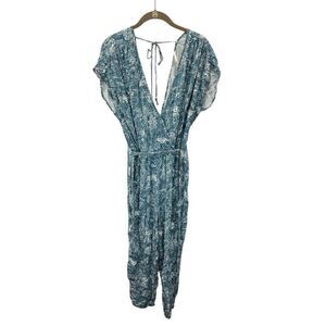 Free People Blue Paisley Print V-Neck Open Back Jumpsuit Size M 100% Viscose