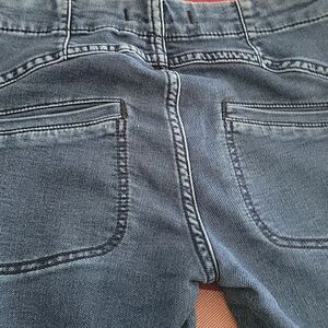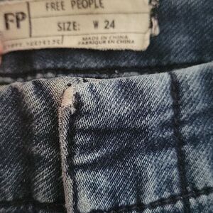 waist 24 ,length 35. These Free People skinny jeans feature a sleek, tapered leg design in a versatile medium blue wash. Crafted for a comfortable fit, they offer a slightly lived-in look with subtle fading and distressing on one knee. Perfect for everyday wear, these jeans combine style and ease effortlessly.
