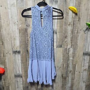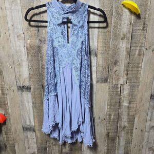 Free People Blue Tell Tale Secret Origins Lace Tunic Mini Party Date Dress
