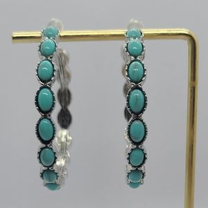 Navajo Turquoise Beaded Silver Hoop Earrings Boho Native American Jewelry New