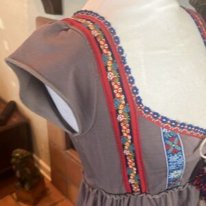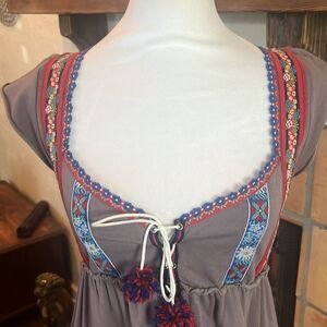 Free People Boho Embroidered Pom-Pom Tiered Mini Dress, size S
