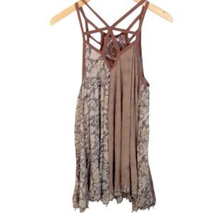 Free People Boho Oversized Floral Lace Tunic Tank Top Dress size Small