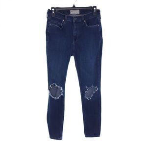 Free People Busted Out Knees Skinny Blue Jeans Womens Size 28
