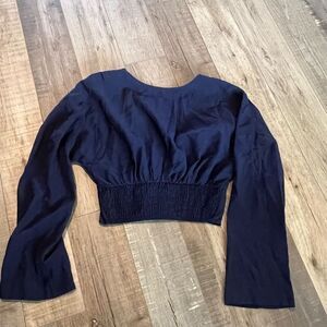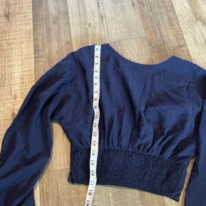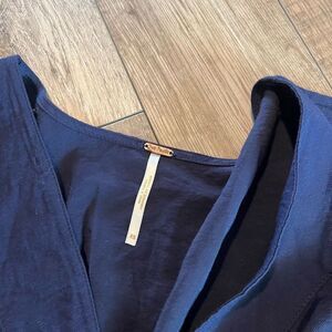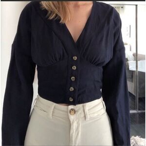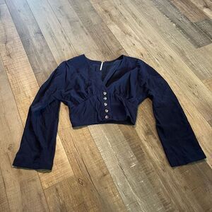 Free People Button Crop Blouse in Navy size xs