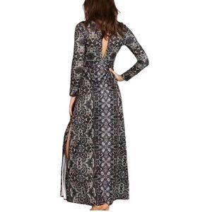 Free People Cabaret Long Sleeve Maxi Dress Black/Gray Combo in the Size Large