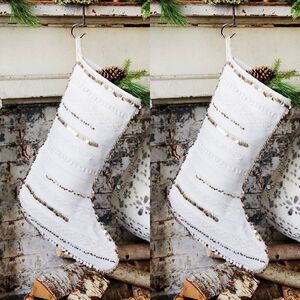 Fun meets festive in this large wool-blend holiday stocking. Featuring cascading coin detailing and crochet accents. Crochet corner loop for easy hanging.