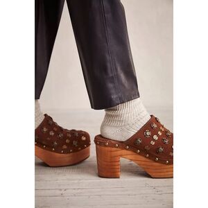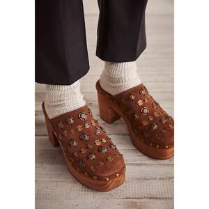 An effortlessly cool addition to your clog collection, these stunning slip-on shoes are featured in a closed-toe style and backless design with a soft leather upper, metal embellishments, and a stunning wood sole.