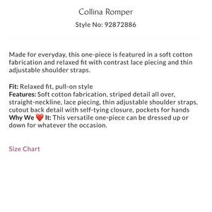 Features: Soft cotton fabrication, striped detail all over, straight-neckline, lace piecing, thin adjustable shoulder straps, cutout back detail with self-tying closure, pockets for hands