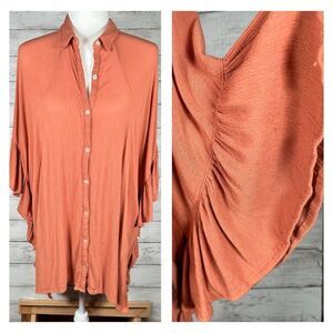 Free People Crinkle Oversized Butterfly Ruffle Sleeve Tunic w/ Pockets M/L