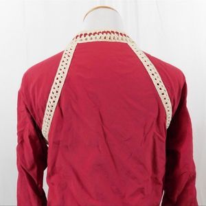 Free People Crochet Inset Baseball Bomber Jacket, red and white.