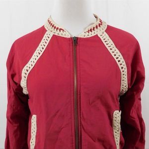 Free People Crochet Inset Baseball Bomber Jacket XS