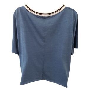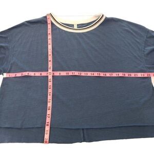 Free People Cropped Shirt Top Women's XS Blue White Black Contrast Draped NEW