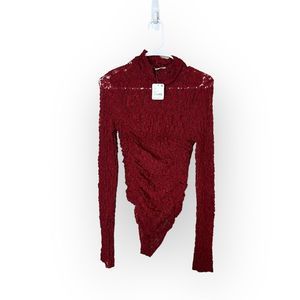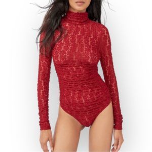 Free People DAY N NIGHT LACE BODYSUIT IN HOLLY BERRY Size XS