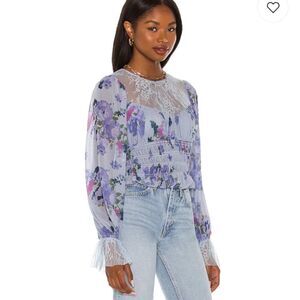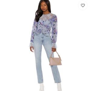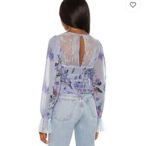 Free People Daphne Blouse in Silver Blue Combo NWT Sz S